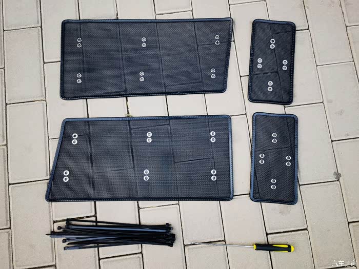把中网塞进去后,找准位置,用绑带绑在进气格栅上,收紧绑带、剪掉多余的部分,就大功告成了。安装第一片的时候,稍微费了点时间。找对方法后,其他三片很快就能安装好。