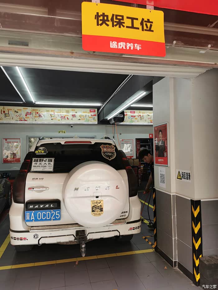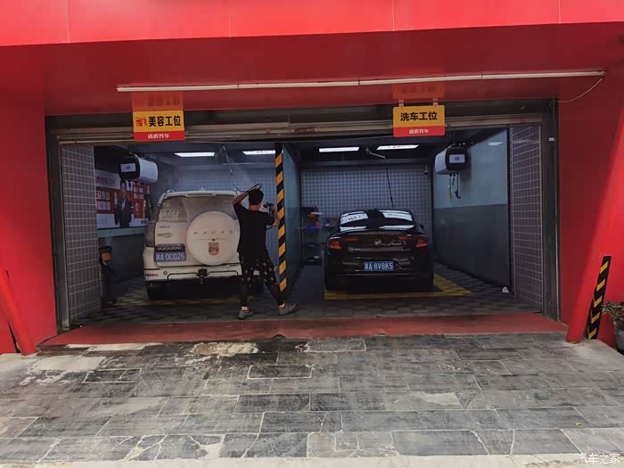 保养结束后,来到了长期固定洗车的店面,直接开到工位上。