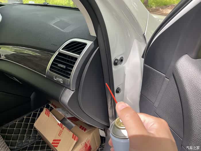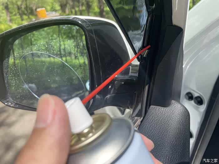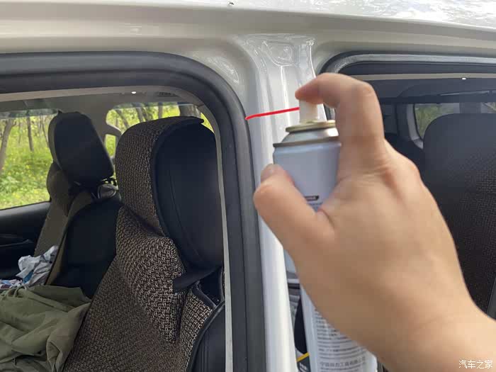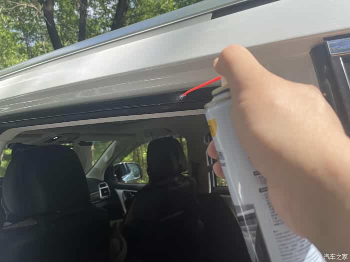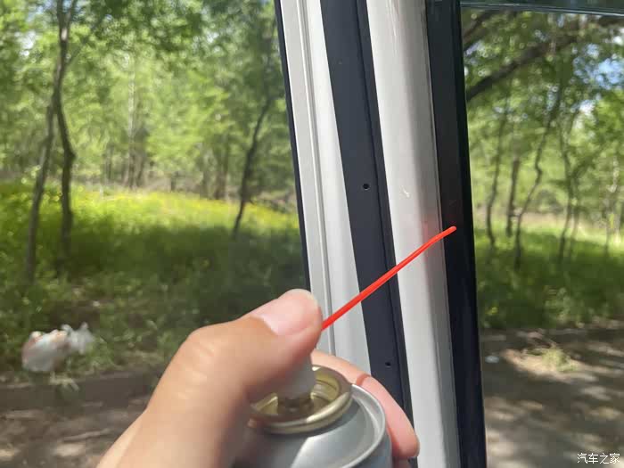 把导管插上喷口沿着车窗四圈喷射,注意掌握好力度,不要太多,也不要太少,以滑道全面润滑即可