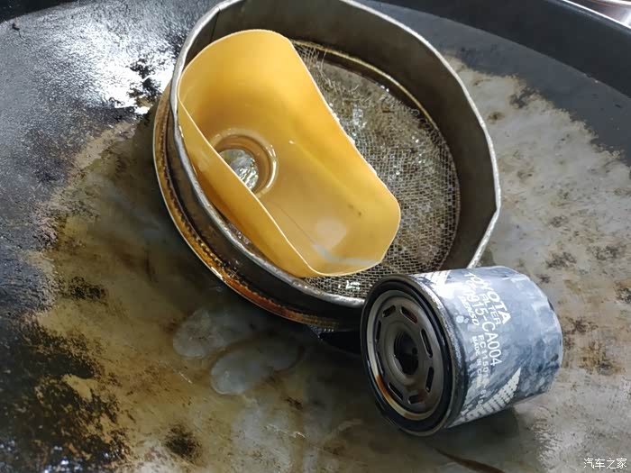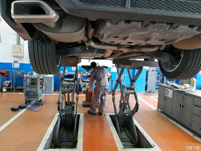 车子升起来,拆下下面的护板,把车子的机油放干净,在这时候,用扳手检查底部螺丝,清理轮胎石子,把胎压打足,其他的项目完事之后,机油也流干净了换上专用的机油滤芯。