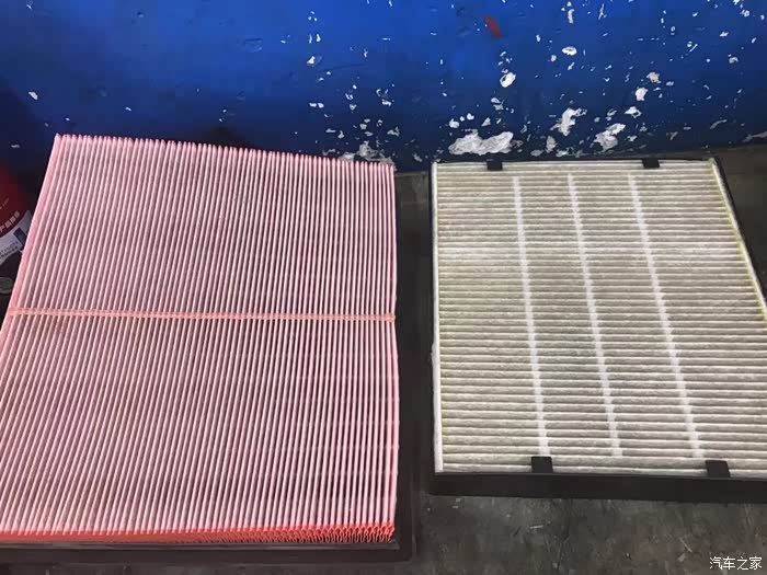 给我登记完成后,车子就开进车间进行保养了,防护是保养的开始,然后把空调滤芯和空气滤芯拆下来,放在专门存放的地方,把提前准备好的新的滤芯换上。
