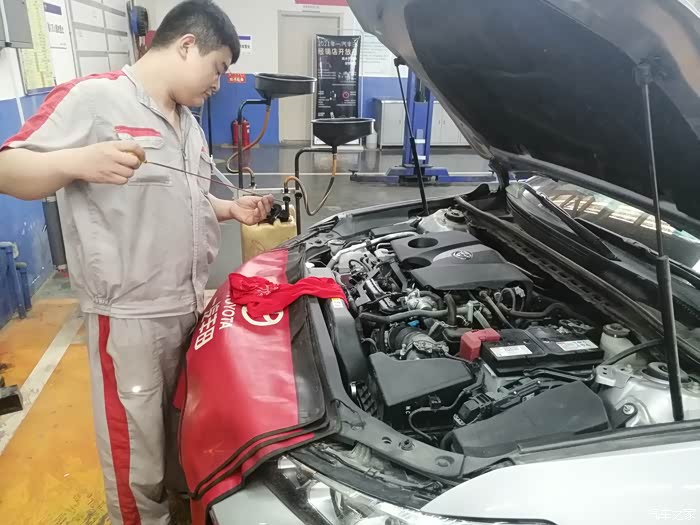 车子放下来,给车子换上纯牌的机油,查看标尺达到要求的液位之后,还给检查了刹车油和防冻液等液位,还给查看了电瓶,给轮胎补足了气。