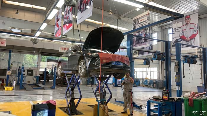 因为车子用的比较多,这有转眼到了保养的时候,电话提醒的很及时,因为每天为了生活忙碌奔波,真的有时候疏忽了。预约好了,就赶紧把保养做了。车子升起来,要在车底下把机油放出来