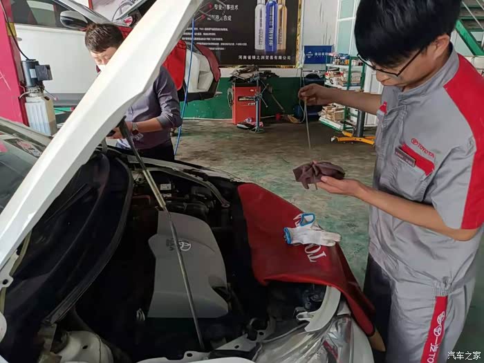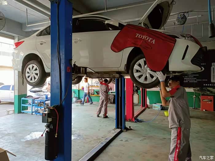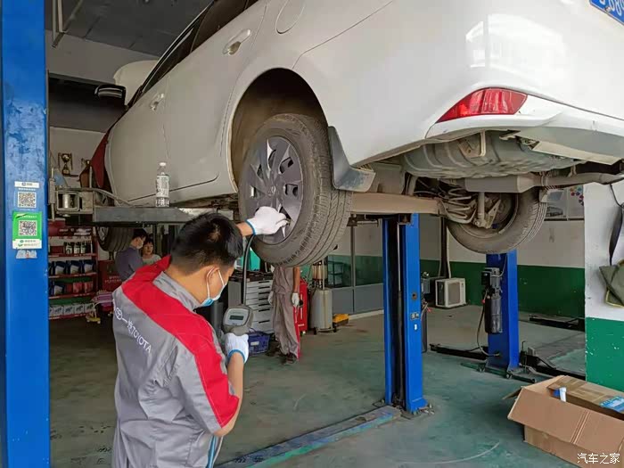 上次保养车已经是半年前了,因为我的车去年到现在跑的比较少,平常在我们县城都是上下班或者接孩子使用 ,所以我后来基本上都是一年保养两回,差不多六七个月的时候,看仪表跑了六七千公里了,这时候才把车去保养一下。不过这期间也把车全面检查过一遍,主要是考虑五一的时候出去自驾游,不知道轮胎底盘有没有什么问题,正好去市区办事的时候,把车开到建设路东头的丰田售后,让专业的师傅检查了一遍。