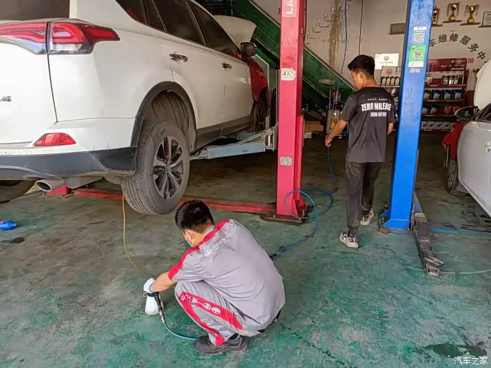 前两年过来保养都是趴在地上换机油,现在有举升机确实好得多