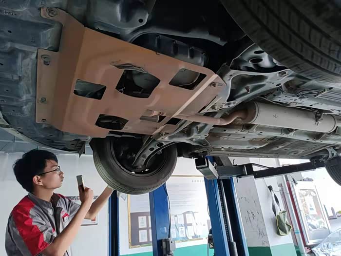 威驰这个车底盘不算低,不过为了保险,我还是装了一块发动机下护板版