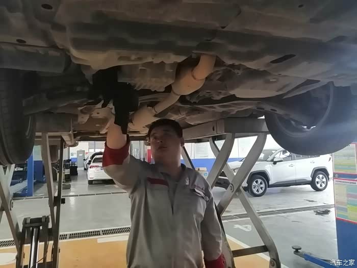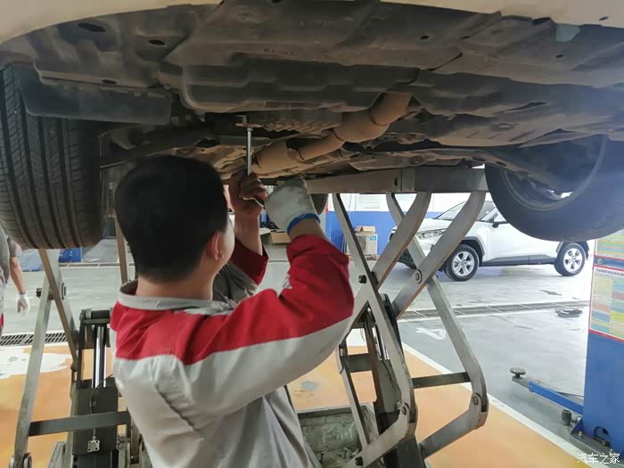 车子升起来之后,放出旧机油,检查底盘各处,紧固各处的螺丝和轮胎