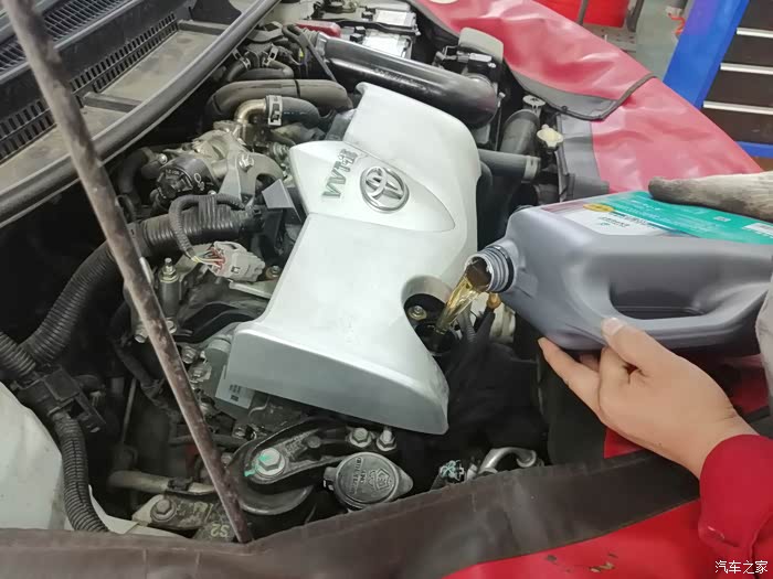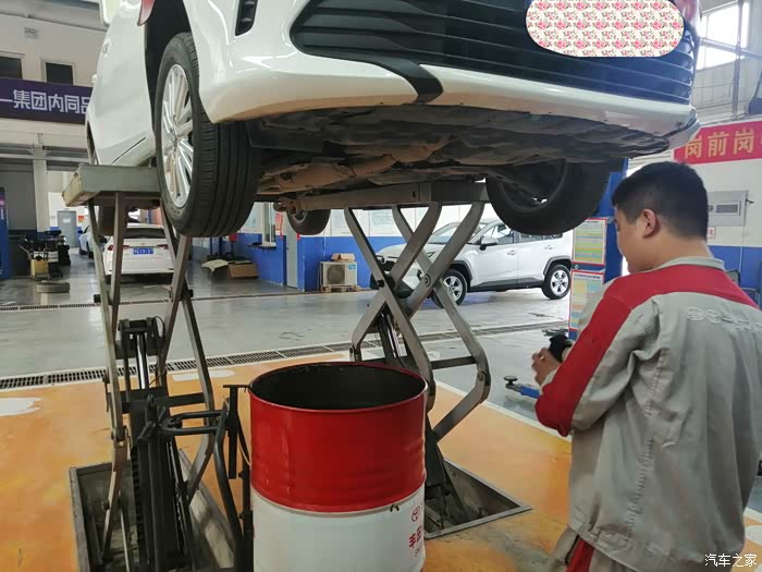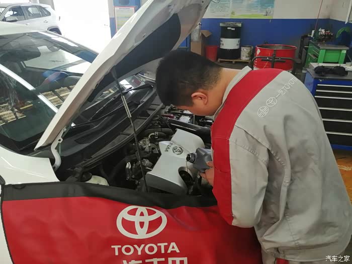 还是往常一样,车子来到之后,保养前的登记,出单子,做保养,这个流程不会变,登记之后,休息室把我安排好之后,我还是想看着车子做保养,省的无聊。车子开到车间之前,单子就已经递给维修师傅了。师傅按照单子准备好保养所需要的东西之后,保养就可以开始了,车间的车子很多,丰田各种型号的车非常多,预约就是方便,来了不用怎么等待,就能安排做保养。