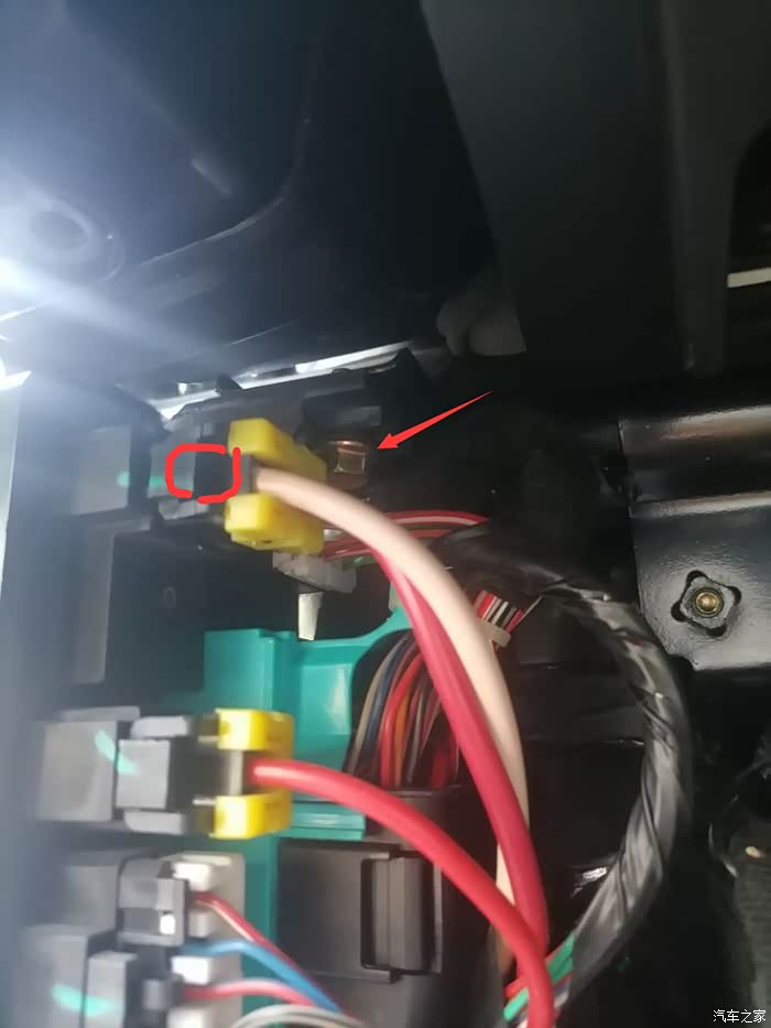 保险盒上部固定锣丝,需要拆图圈中的保险总电源接口