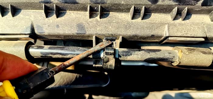 用下螺丝刀轻轻的翘开这个卡扣,把固定管线取下即可。