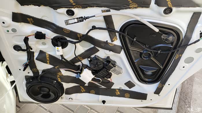 门的内饰板都贴有隔音棉,我也是简单帖了一下,没太扣细节,时间不多,手法还不太行,所以差不多就得了。最后全都弄完了,准备安装内板时,发现分频器的位置有点碍事,门板压不严,又重新拆开布置的分频器位置,因为后期真的没啥精力了,也没再拍照,我是把分频器放在了喇叭上部,用隔音棉包裹住,这个位置还有点空间,够用!