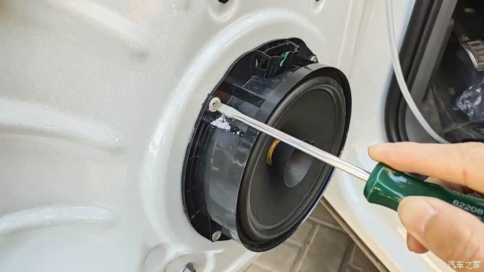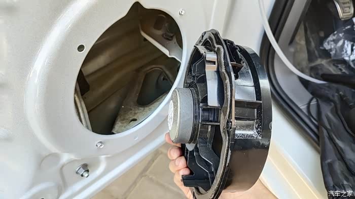 喇叭拿下来,注意拉铆钉的头别掉进车门板内部,不来好往出拿!忘了拿还会有异响!