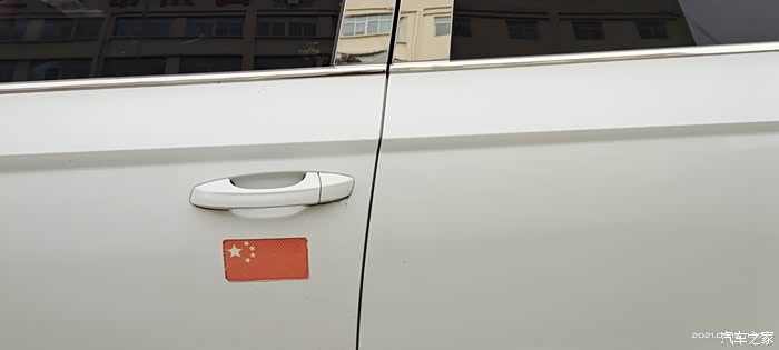 另外我给主驾驶的门把手下也贴了一个小红旗,这个比上面的那个放光效果要好很多,晚上行车,如果碰到横面来车,也起到反光警示效果。