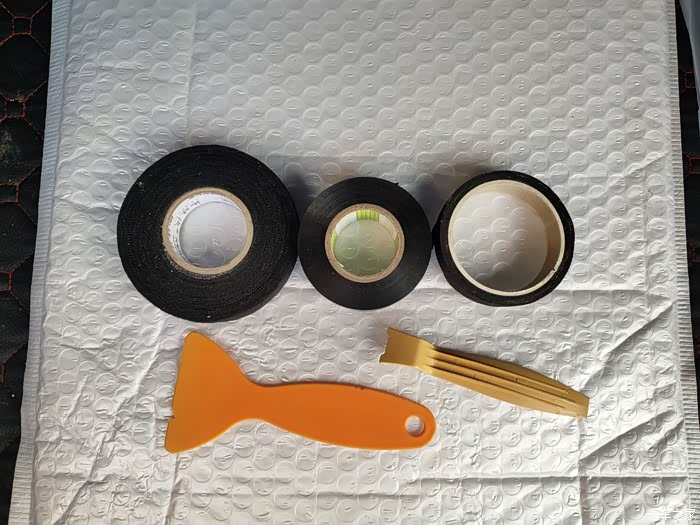 准备绝缘胶带、防水胶带、绒布胶带、拆饰板的塑料翘板!准备施工!
