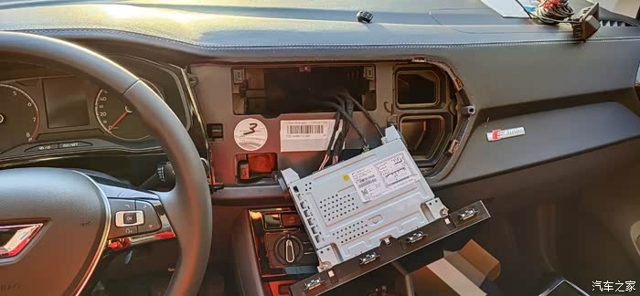 饰板拆开后,就看到固定车机的机关,基本上都没有专业工具,但是普通的螺丝刀也是完全可以应付的。