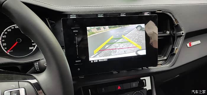 安装倒车影像这对于一个没接触过改装的车主来说并不是一件容易的事,所以一定要试机,之前没说走线的事,也正是目前是在试机阶段!有电有信号,自然就有了影像,接下来就是把线布置在饰板里面了!思路清晰,干活还能更快,以免返工!