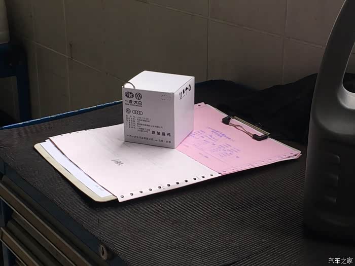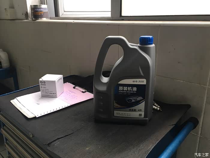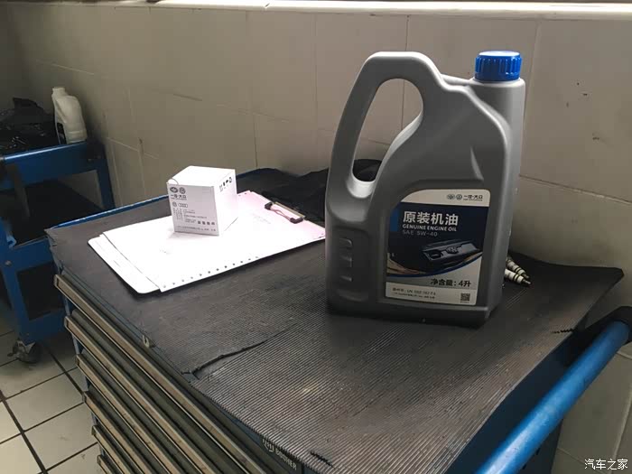 说话间老王已经领好了补品,5W-40的半合成机油+原厂机油滤芯、放油螺栓和垫片(个人觉得放油螺栓不用每次都换,垫片换一下就够了!)