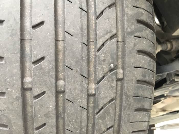检查轮胎发现又捡了一个钉子!这小五也太喜欢捡东西了吧!