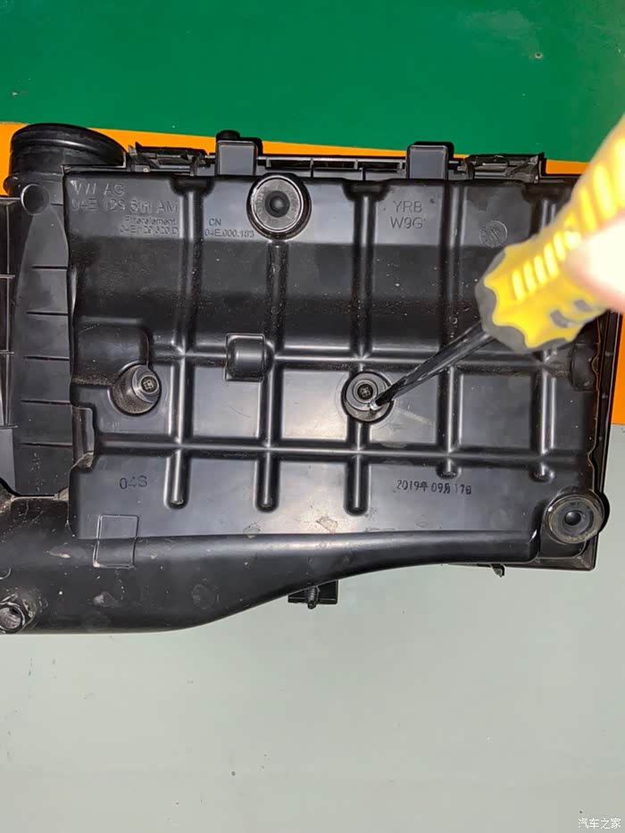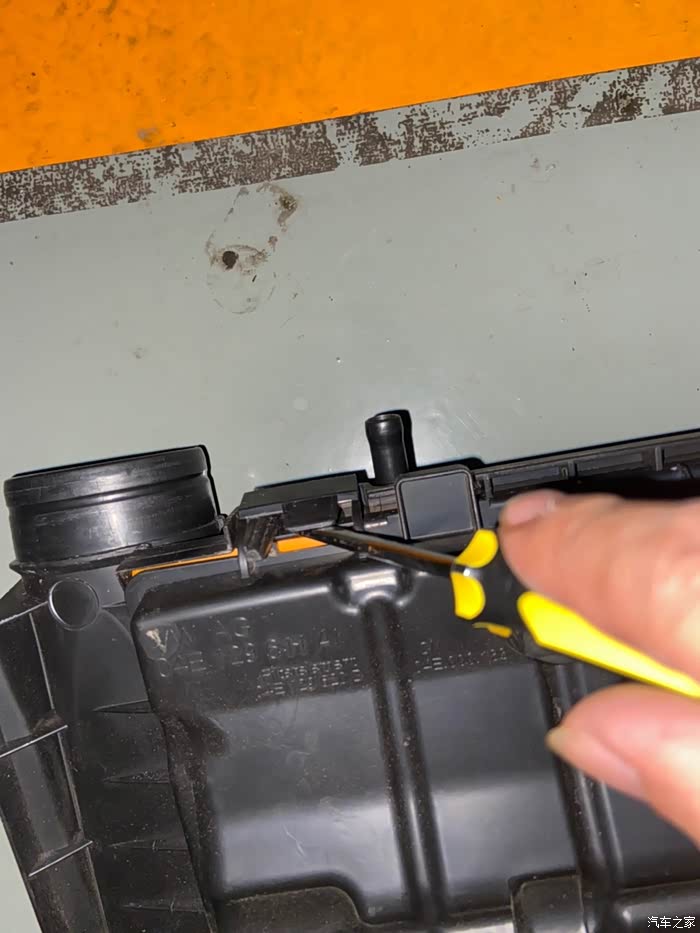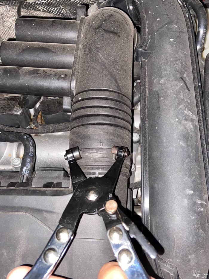 第四部用卡环钳把进器口,卡环去掉记着别取下来,把他套在进气管上,取掉后,就开始用双手,拿着大众标的空气滤芯盒,左手和右手错开用力往上提,取下来之后,拿着梅花螺丝锥拧下上在盒子上的两颗螺丝。拧开后在用平口螺丝锥慢慢的撬两边的卡扣,记着别用大力出奇迹,敲坏了去4S店换这个空气滤芯器盒子160元左右一个。等你打开后就会发现这个盒子里面好脏,全是灰尘尤其是那种干工地的车主,然后取出空滤盒里面的空气滤清器。然后在拿个新的一对比,就会知道了为什么要换。有好多车主都说拿空气枪吹一下就好了,可是会破坏空气滤清器的结构。