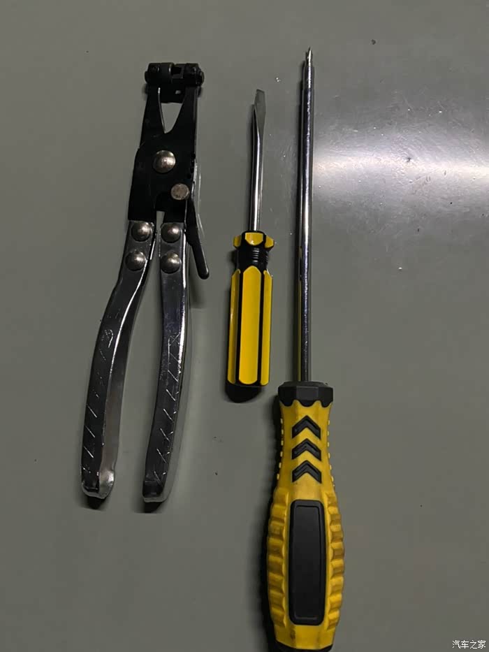 自己动手换发动机空气滤清器,其实这个挺简单的,以前不懂的时候也觉得很难,但是看4S店维修技师拆了两次,原来这么简单。首先准备一把卡钳、一把梅花螺丝刀、一把平口螺丝刀和空气滤清器。