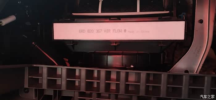 安装新滤芯要注意方向!这样,更换空调滤芯的大半工作就已经完成了,剩下的就是恢复原样,把盖板安装上