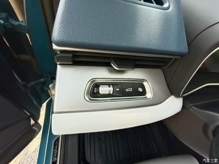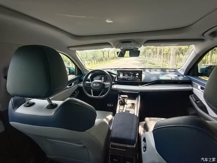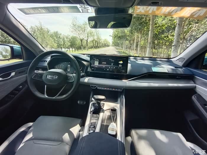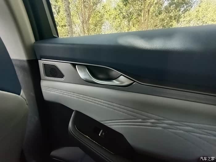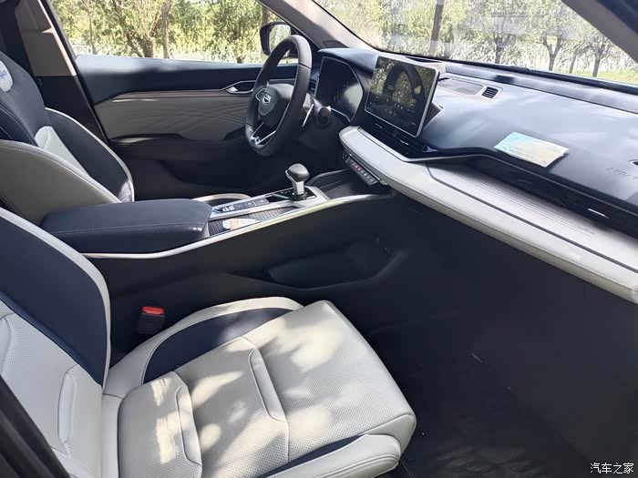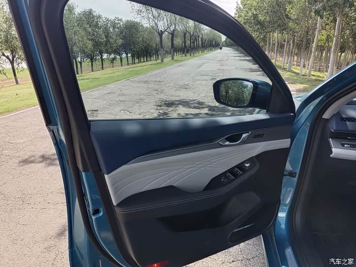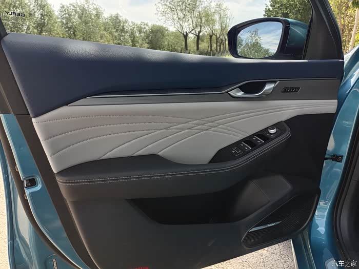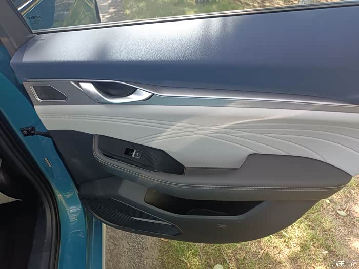 打开车门蓝灰色的配色风格映入眼帘,尤其是在这炎炎的夏日更显得几分清爽