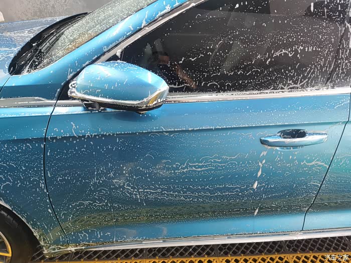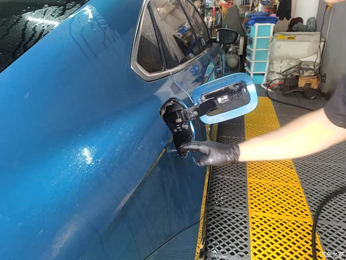 洗车小哥还是很仔细了,清洗油箱盖中的泥垢。