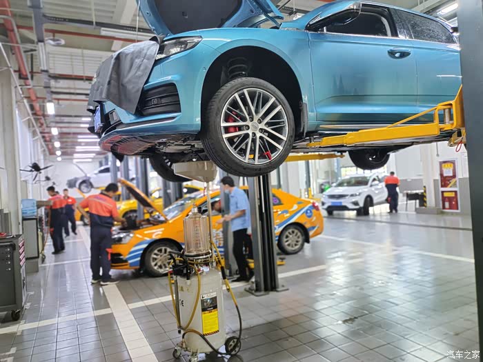 很快车就被开到车间工位准备保养了