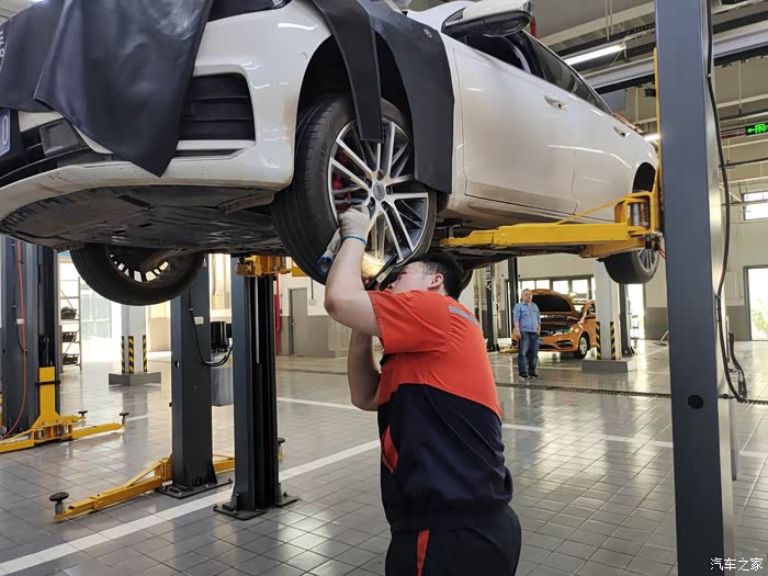 很快我的车就被开到车间做保养了