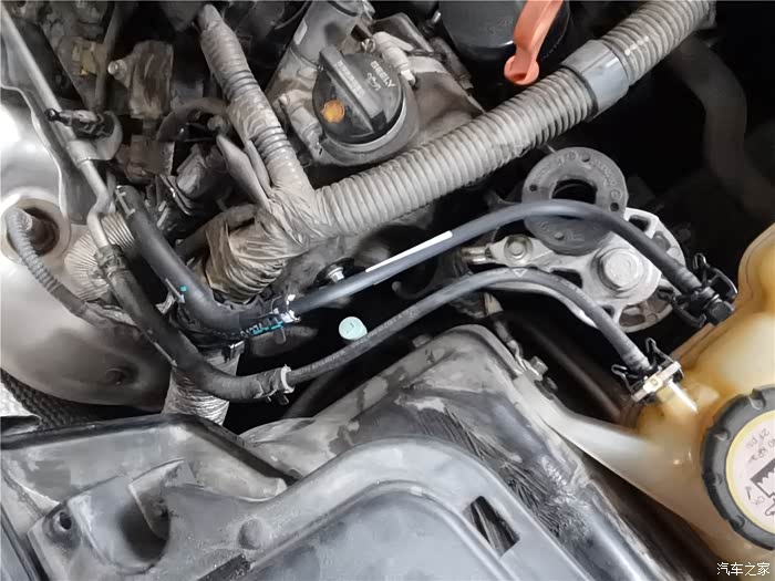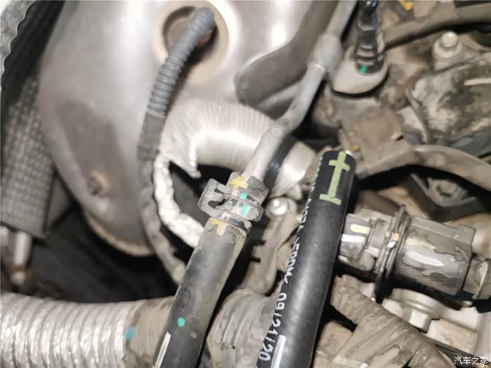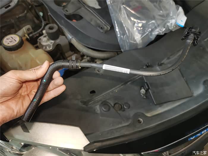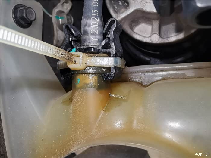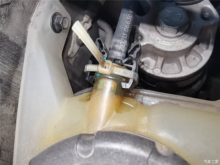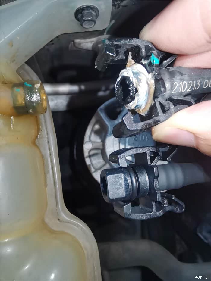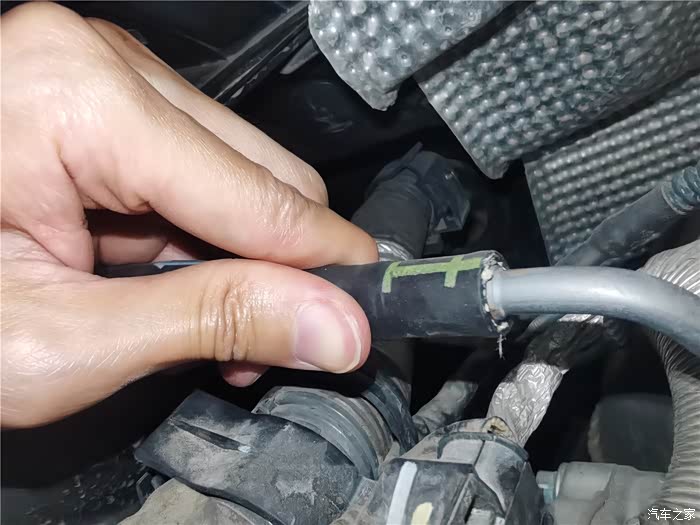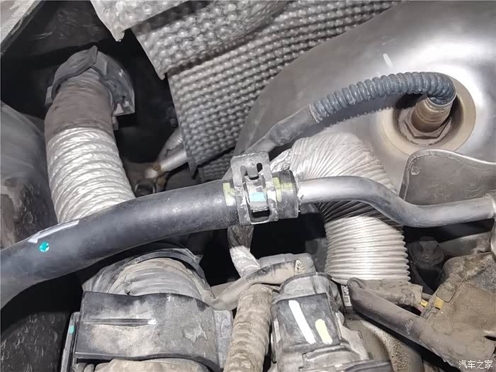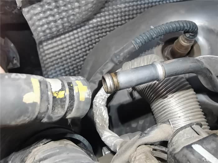 年前的时候已经更换了一条长管,原因是塑料管子老化开裂,造成冷却液渗漏,只好换管子,结果在拆卸更换的时候,短的软管也拆卸过,加上接口老化,也在不久后开始漏夜,当时做了简单的处理,就是通过家里水暖连接的生料带,缠绕了一下,增加了接口的密封性,但将就的时间不太长,又到了必须更换的时候,还好,在上一次保养就提前预购了副水壶软管,这个东西需要预备购买,临时调货期可能会很长,接下来直接上图。
