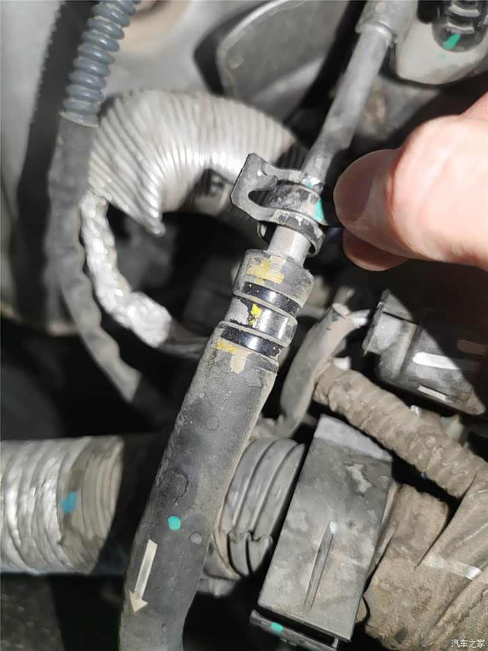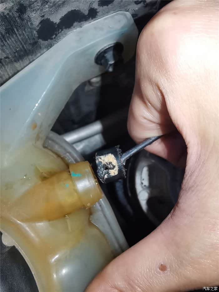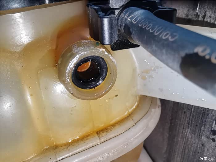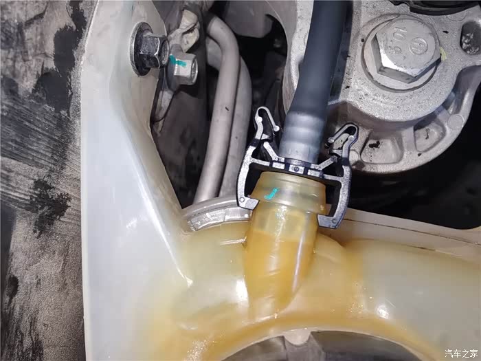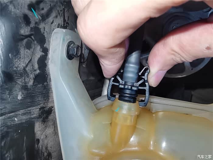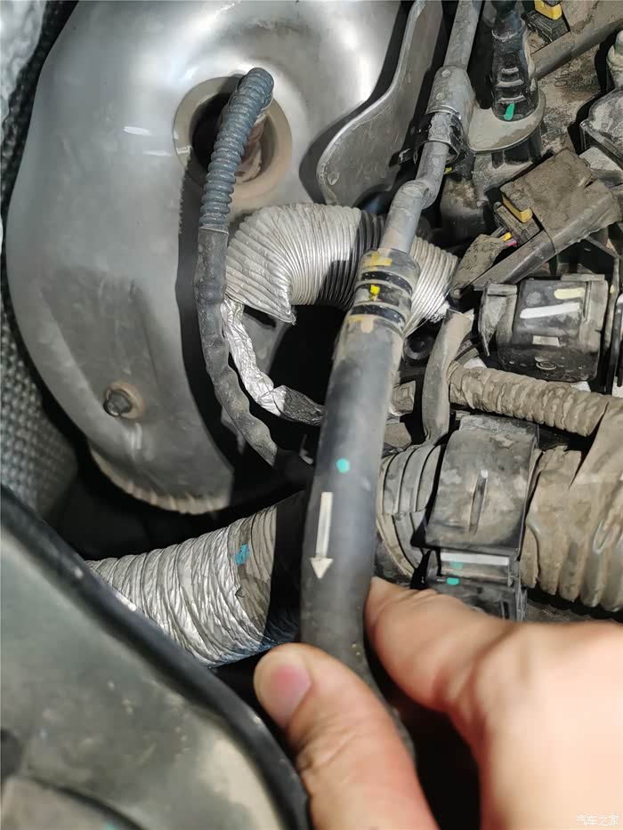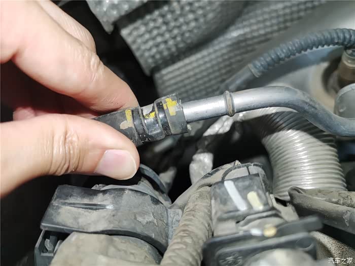 年前的时候已经更换了一条长管,原因是塑料管子老化开裂,造成冷却液渗漏,只好换管子,结果在拆卸更换的时候,短的软管也拆卸过,加上接口老化,也在不久后开始漏夜,当时做了简单的处理,就是通过家里水暖连接的生料带,缠绕了一下,增加了接口的密封性,但将就的时间不太长,又到了必须更换的时候,还好,在上一次保养就提前预购了副水壶软管,这个东西需要预备购买,临时调货期可能会很长,接下来直接上图。