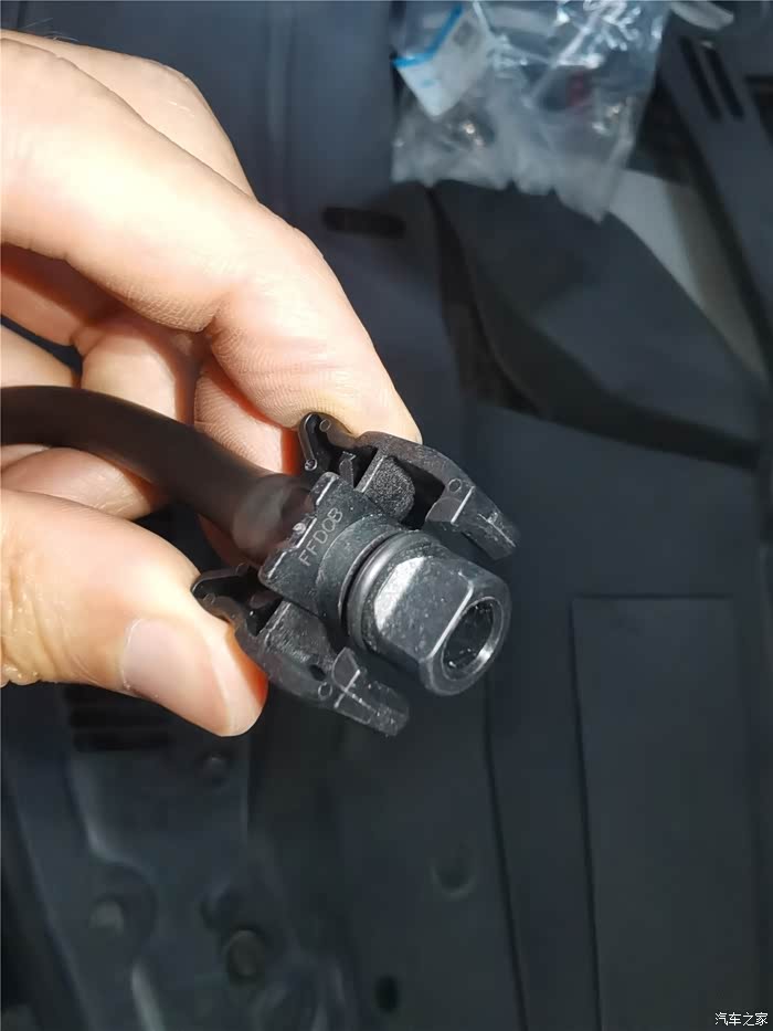 另一端接口,需要把原来的管子的夹子拆掉来装新管,土字部分的工字里面就是夹子所夹的区域