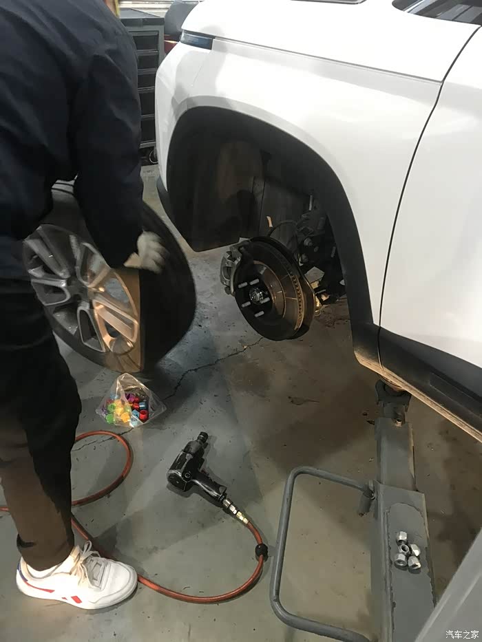4个车轮都卸完了,也都装上卡钳套了,酷酷哒