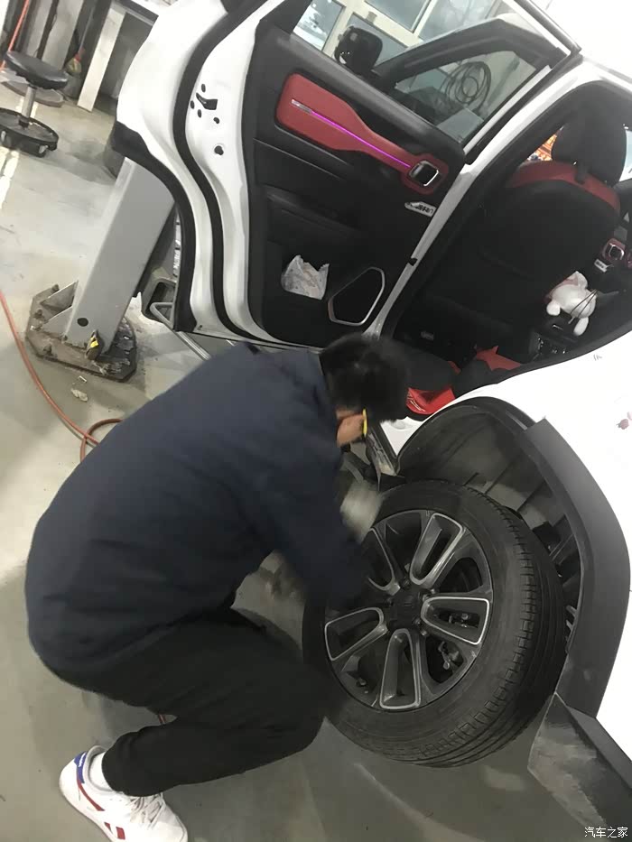 调试完毕,没有问题,师傅正在上螺丝,说真的,我真的真的害怕,车上高速后,轮子飞出去了