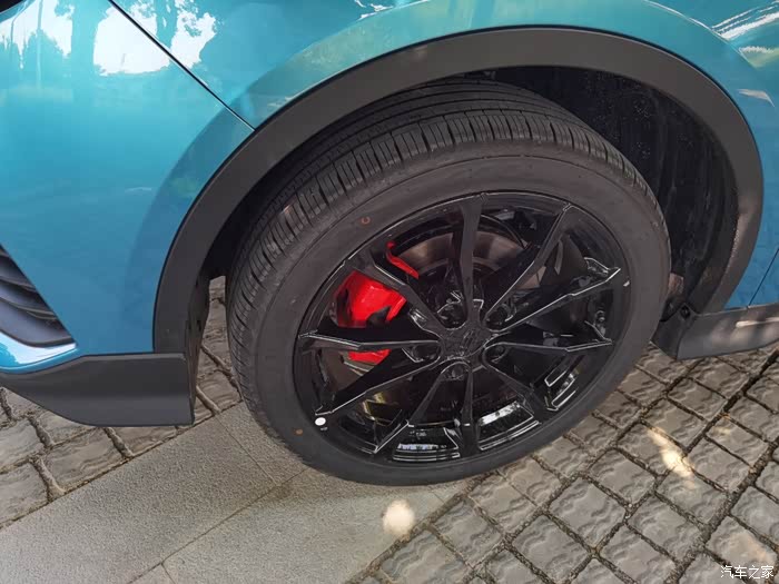 熏黑的轮毂,搭配红色卡钳,运动性十足。