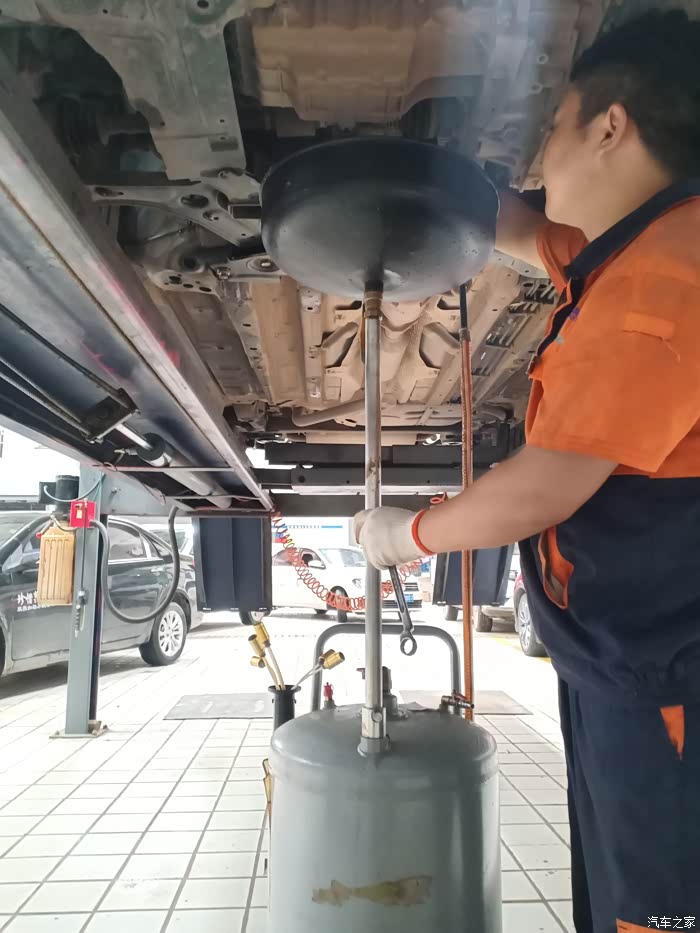 师傅在认真的放机油