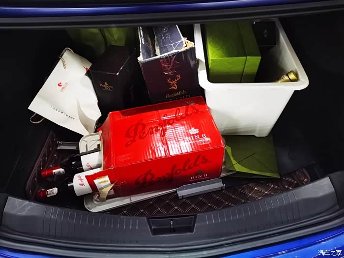 后备箱塞得满满的,有点乱,不过感觉后备箱空间设计上能够再大点就好了。