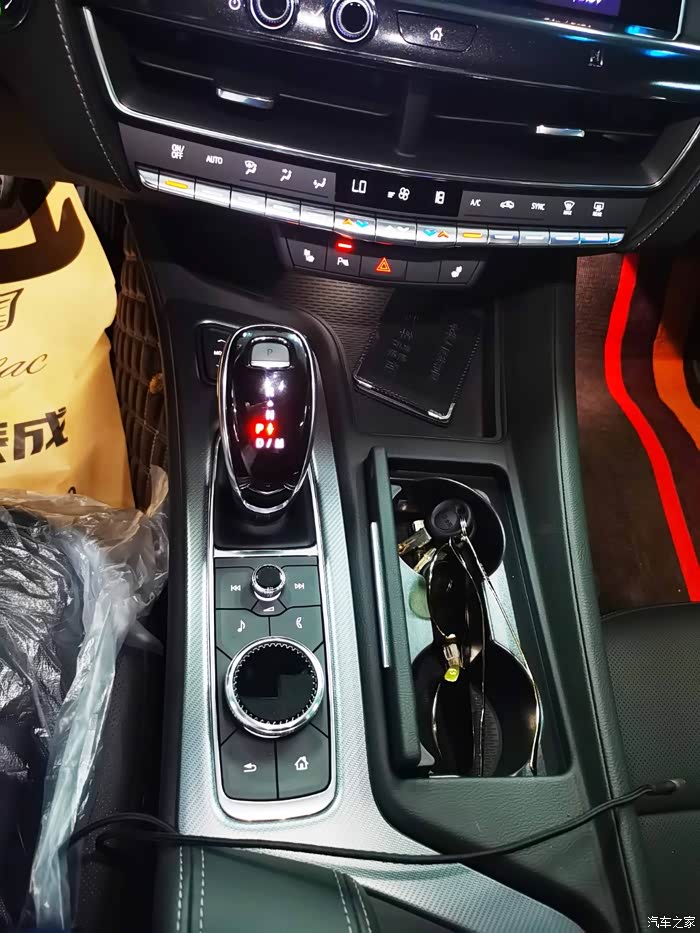 变速箱整体看上去比较豪华上档次,档杆握着挺有手感的,切换流畅,旁边还设计了两个杯子槽,开车放点随身物品也挺合适。