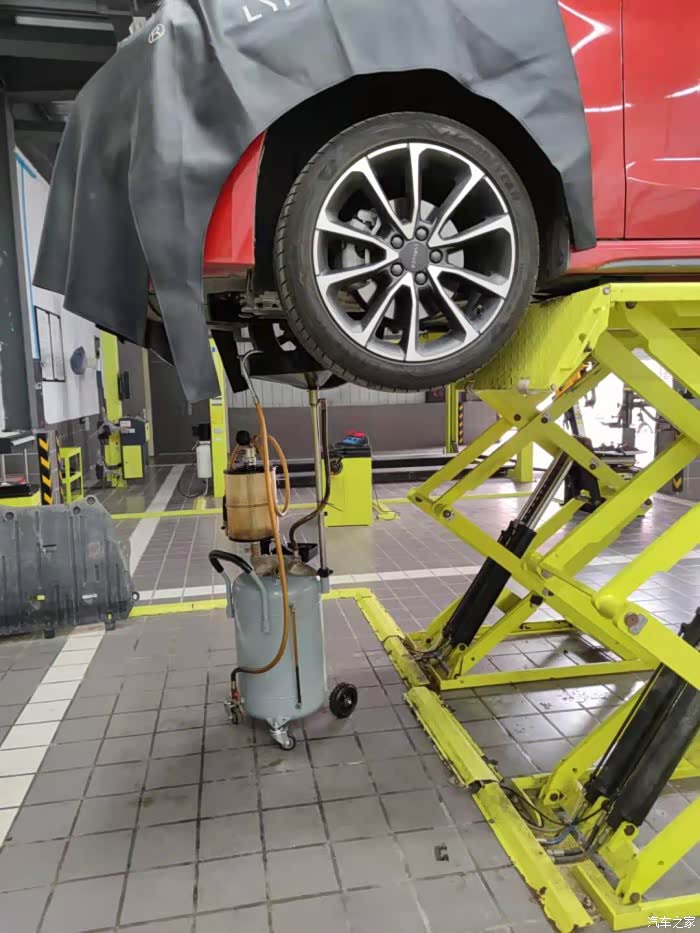 办完手续后我到保养的车位那里正好看到师傅在给我的车子来个全身检查这一幕被我拿起手机快速的拍下了,绝绝子!