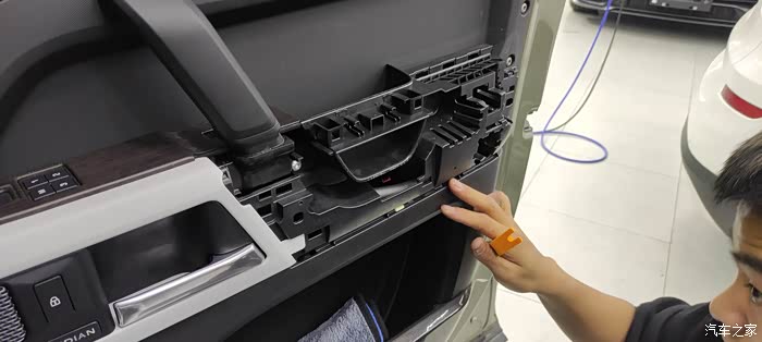 真皮扶手拆下来以后,里面....很多很多的螺丝,大的小的都有十几个吧,这是我见过门板螺丝最多的车了哈哈哈哈