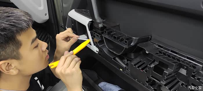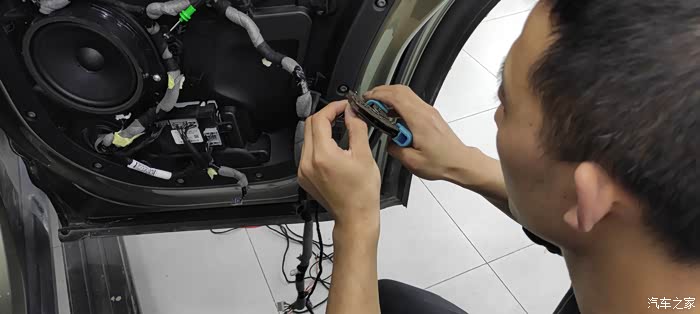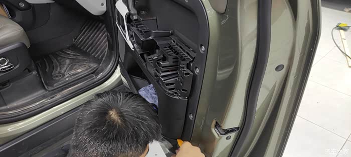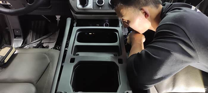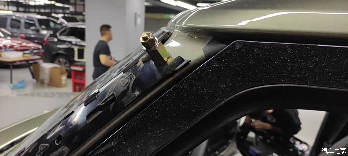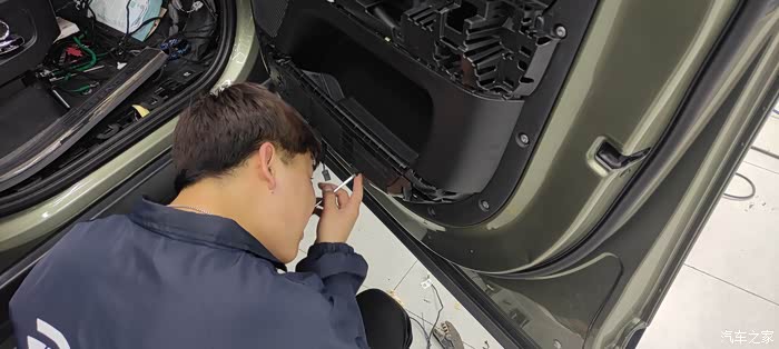 今天的“大老虎”施工项目是涉水喉+全车十色氛围灯,原厂的十色氛围灯今天必须安排上再走,车间实在太满了把我挤到了角落来,所以这张照不是很美观大家见谅。