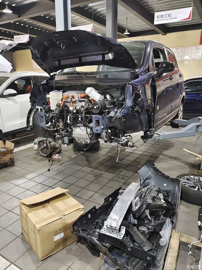 在4S里看到的…不知道这车撞了什么了…被拆成这样子…