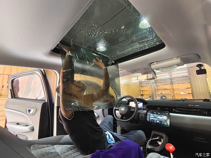 海南还是天太热……4S送的膜不包含天窗的…实在是晒得不行…找朋友棍了卷他用剩的途虎定制的强生膜贴天窗