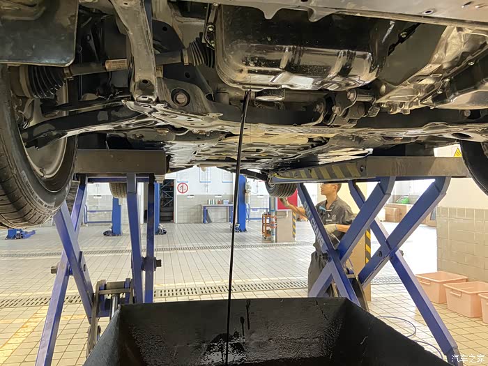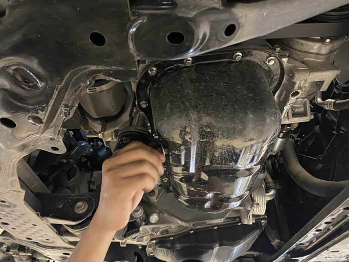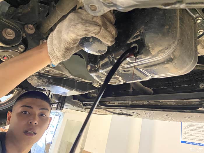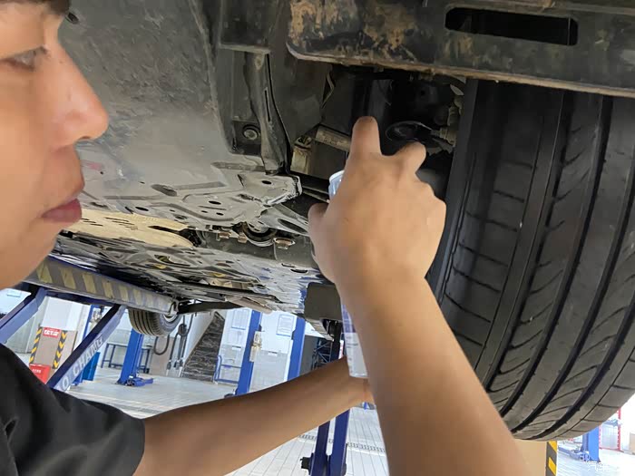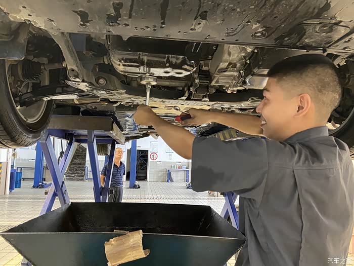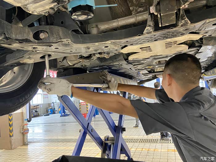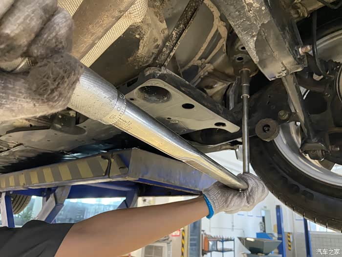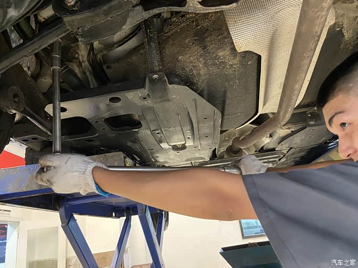 对车辆底盘进行检查,没有异常。然后小师傅开始拆卸护板。