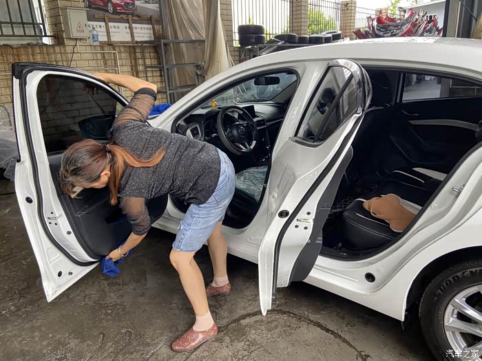 洗车个大姐洗的那叫一个干净,卡卡角角都给你擦得干干净净的。