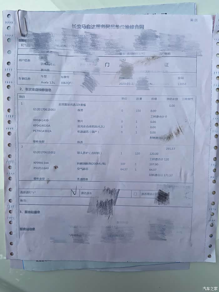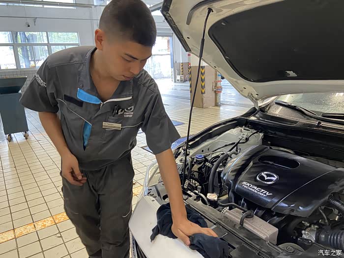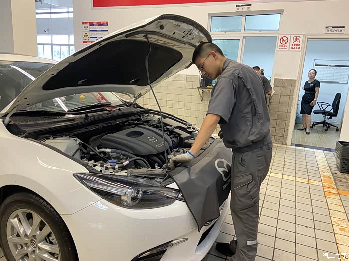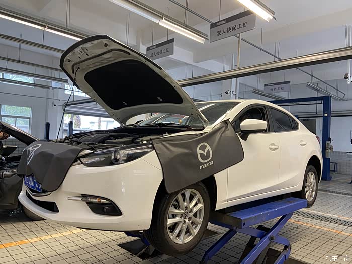 时间过的真快,不知不觉,一年过去了,车也快有一年了。先分享一下保养的事情吧。一整套保养流程下来就大半个小时左右,还是挺快的,工时费也不贵就两百块钱。在外面做保养吧朋友说差不多的,只是对于之后车的保值有一定的影响。想一想我也就忍痛了,坚持在4S店保养的。目前为止保养了两次,我是比较爱惜这个车的,因为一直以来它的颜值都让我感到喜欢,颜色也是选择的白色,虽然红色是马自达的车的灵魂,但是我最终还是不愿意加价叁仟选红色。首保是免费的,也就是一些基础的更换,没什么可说的。这次是做二保,那边打电话说给我送了一次保养套餐,自己意思点工时费就可以了。开过去检查了车辆的整体性能,刹车、胎压等性能,包括的机油、机滤等更换。整体来说车况并没有什么问题,就只有左后轮扎了一个螺丝,一直都没发现,胎压也没报警。保养完车辆,小哥还把车给我送去洗了下,感觉服务还是不错的。下面开始上图。