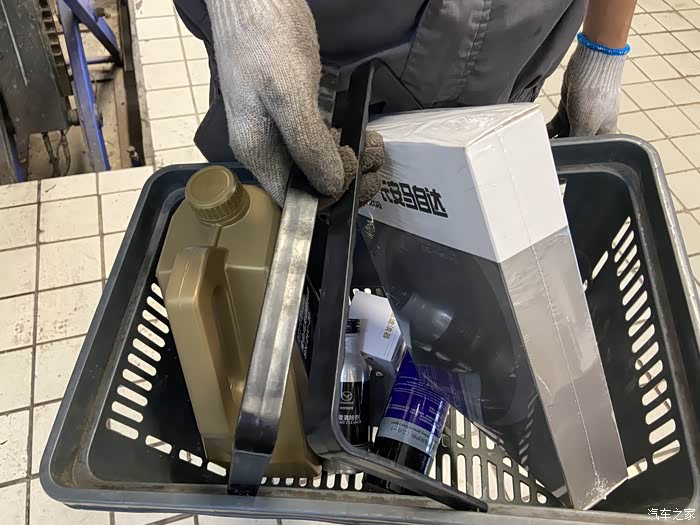 这些就是即将要更换东西,机油机滤、积碳清理剂、球头保养剂、空调滤芯。