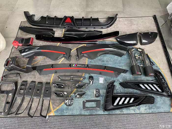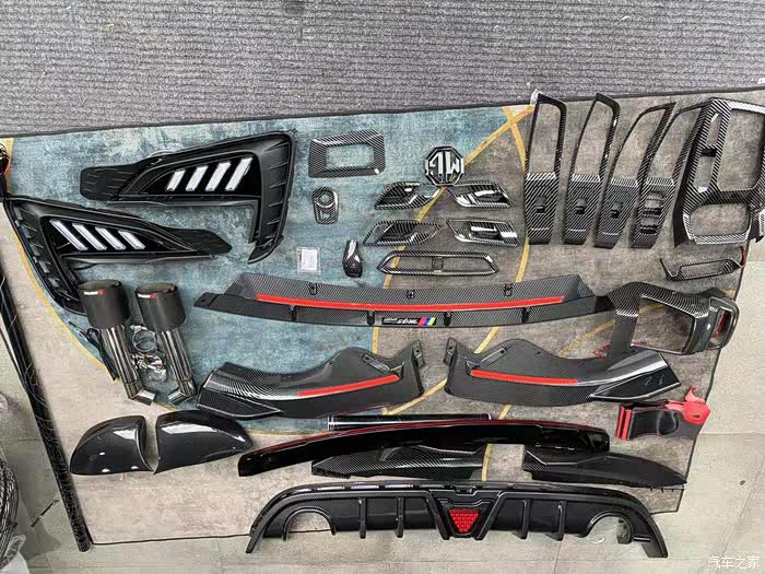 都是选的碳纤纹,除了日行灯以外。 带灯尾翼没有碳纤纹的勉强就亮黑啦
