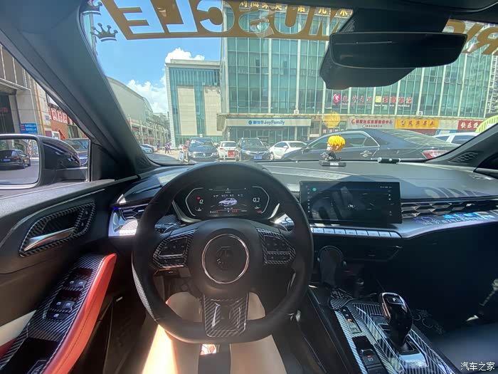 内饰空间还是很棒的,然后我们内饰还改装了一些碳纤维的装饰,整个颜值上升了很多。