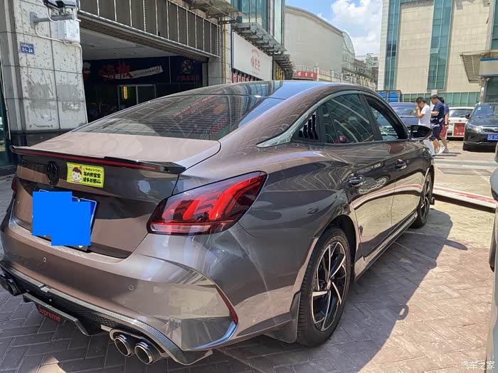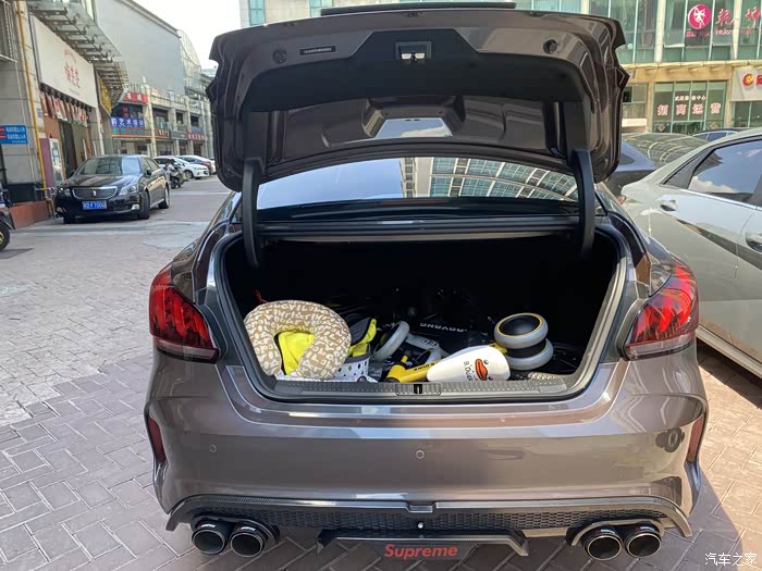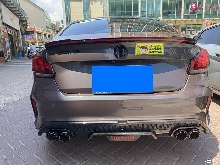 再来看看尾部,改了尾唇,四出排气,logo贴黑,以及流光尾翼。其实大家看到的是四处游尾喉,没有声浪效果,用卡箍固定的。
